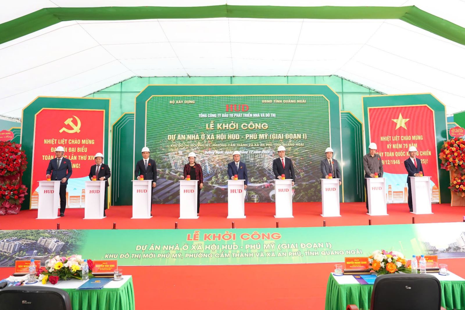 Được sự chấp thuận của Bộ Xây dựng, UBND tỉnh Quảng Ngãi và hòa trong không khí cả nước sôi nổi thi đua lập thành tích chào mừng Đại hội Đảng toàn quốc lần thứ XIV, ngày 16/12/2025, Tổng công ty Đầu tư phát triển nhà và đô thị HUD tổ chức khởi công Dự án nhà ở xã hội HUD - Phú Mỹ (giai đoạn 1) - thuộc Khu đô thị mới Phú Mỹ tại phường Cẩm Thành và xã An Phú, tỉnh Quảng Ngãi.